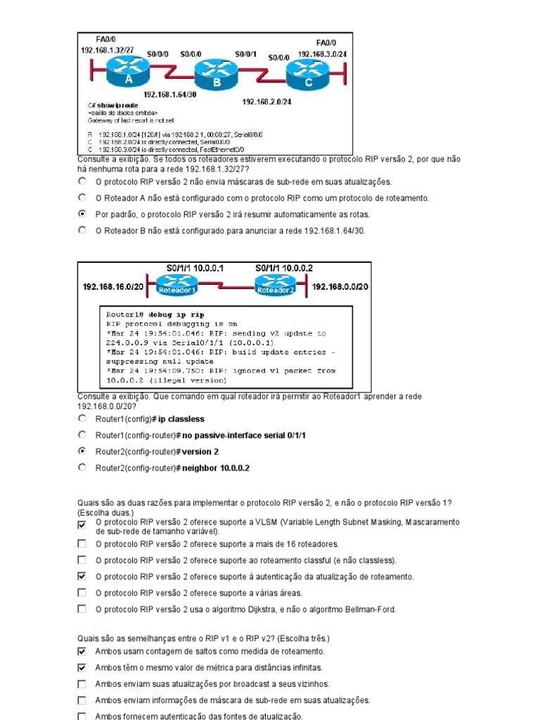 Quais são as semelhanças entre o RIP v1 e o RIP v2? (Escolha três.)