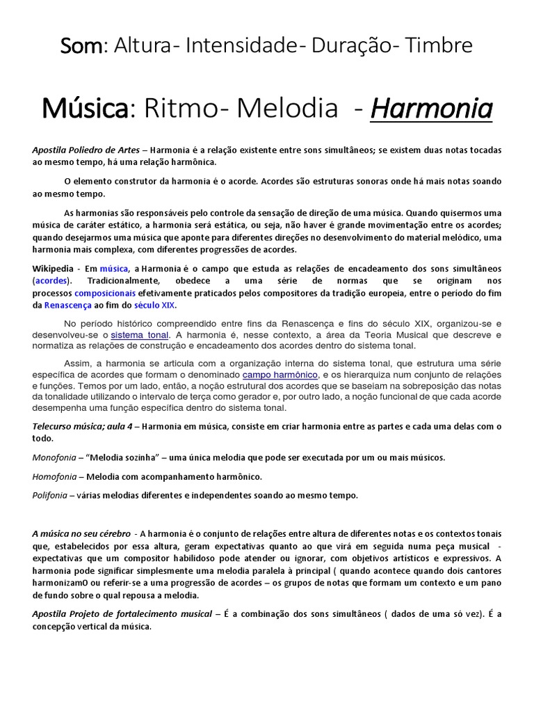 Apostila Poliedro de Artes Harmonia a relao existente entre sons simultneos; se existem duas notas tocadas