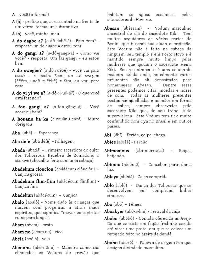 um verbo, forma um substantivo Abesan (abssam) - Vodum masculino