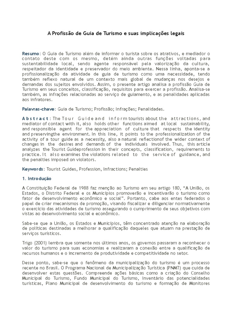 Palavras-chave: Guia de Turismo; Profisso; Infraes; Penalidades.