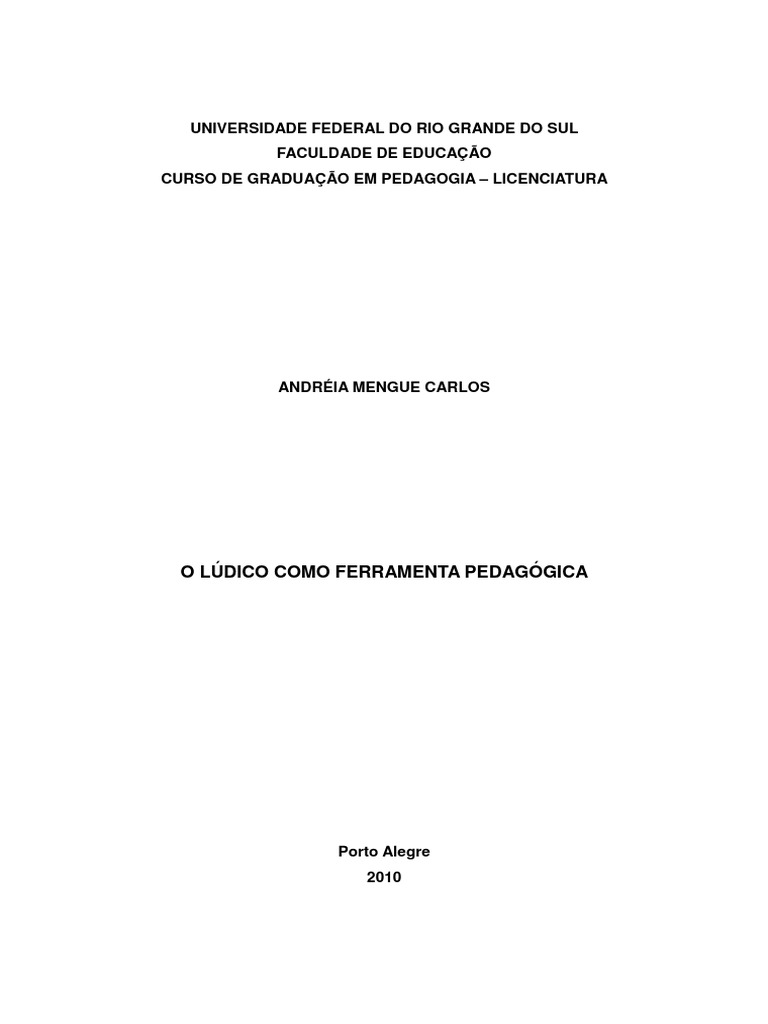 Sob o ttulo provisrio O LDICO COMO FERRAMENTA PEDAGGICA o
