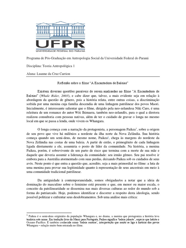 evidenciada no filme A Encantadora de Baleias. So inmeros os estudos que, na