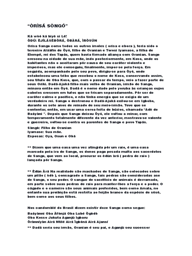 verdadeiro Sango teria sido o quarto rei do povo Yoruba, ou terceiro em