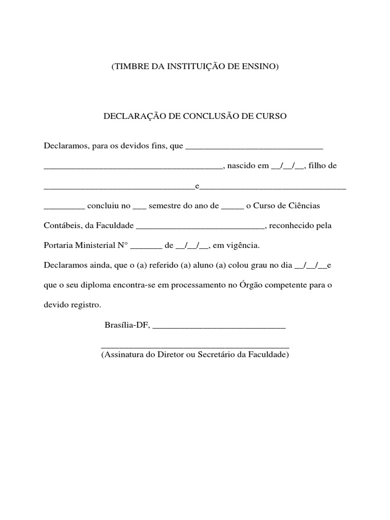 Declaramos ainda, que o (a) referido (a) aluno (a) colou grau no dia __/__/__e