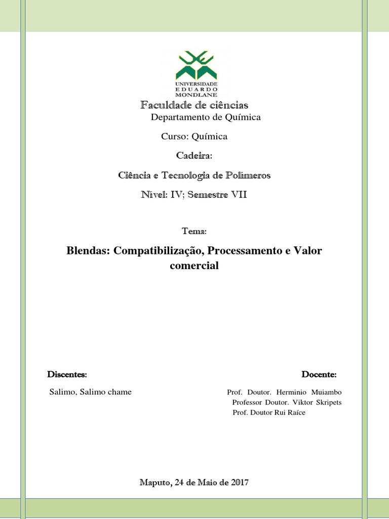 Segundo Medeiros, (2014), blendas polimricos so misturas desenvolvidas com objectivo de