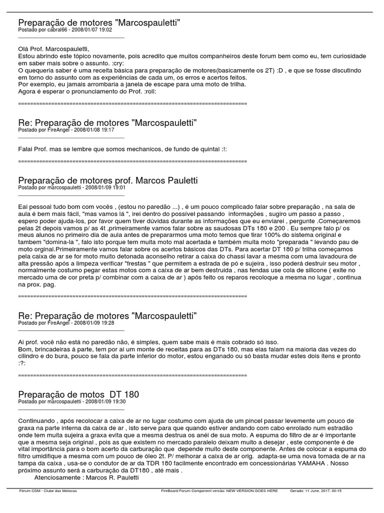 Ol Professor.. Eu tenho uma DT180 e tenho as minhas dvidas tb. Ela orginal e est na de abrir o motor. estou