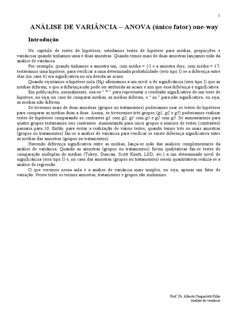 anlise de varincia. Quando as amostras (grupos ou tratamentos) forem qualitativas faz-se testes de