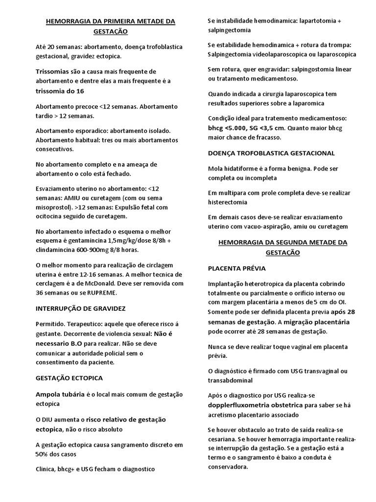At 20 semanas: abortamento, doena trofoblastica Se estabilidade hemodinamica + rotura da trompa: