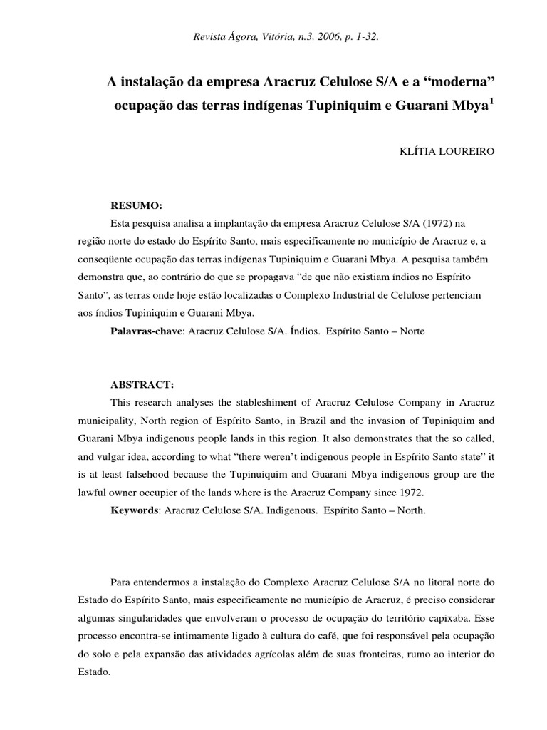 Revista Ágora, Vitória, n.3, 2006, p. 1-32.