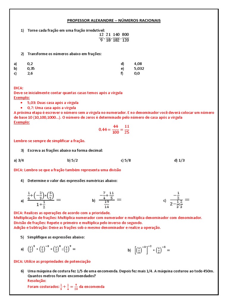 PROFESSOR ALEXANDRE NMEROS RACIONAIS