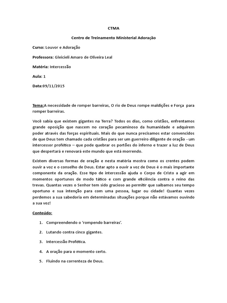 componente da orao. Esse tipo de intercesso ajuda o Corpo de Cristo a agir em