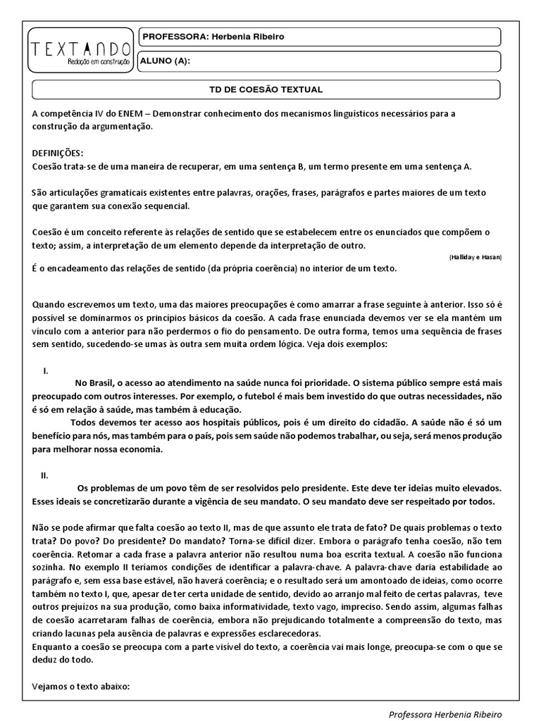 ocorra de maneira adequada, necessrio dominarmos e sabermos utilizar os recursos coesivos.