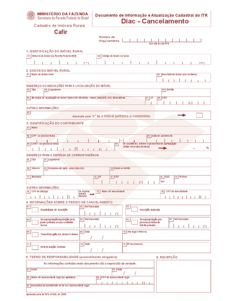 MINISTRIO DA FAZENDA Documento de Informao e Atualizao Cadastral do ITR
