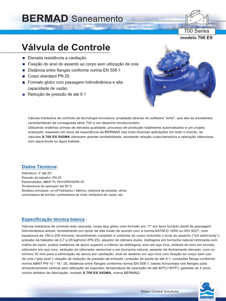 contra defeitos de fabricao, modelo S 700 ES SIGMA, marca BERMAD.