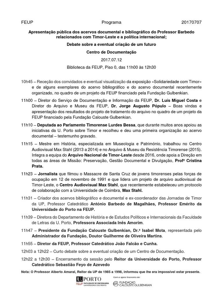 iniciativas da U. Porto sobre Timor e recolheu e deu uma primeira organizao ao acervo