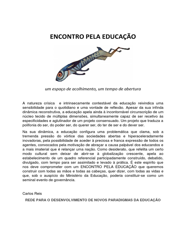 Este Encontro pela Educao, cuja proposta foi apresentada pelo Professor