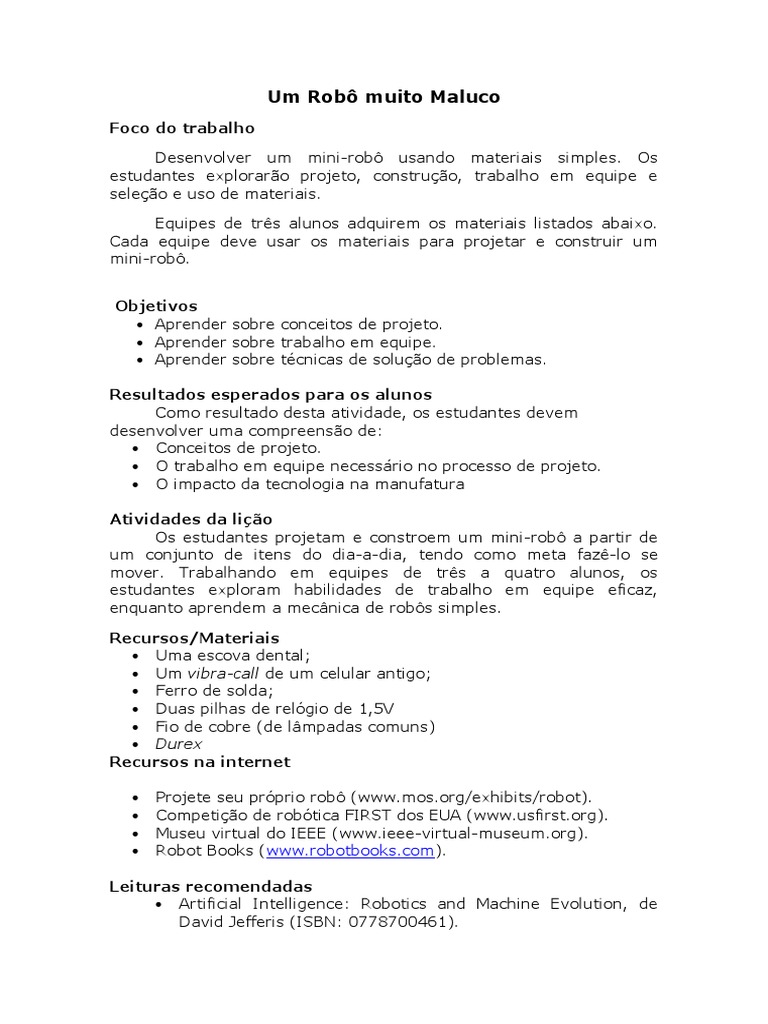 Projete seu prprio rob (www.mos.org/exhibits/robot).