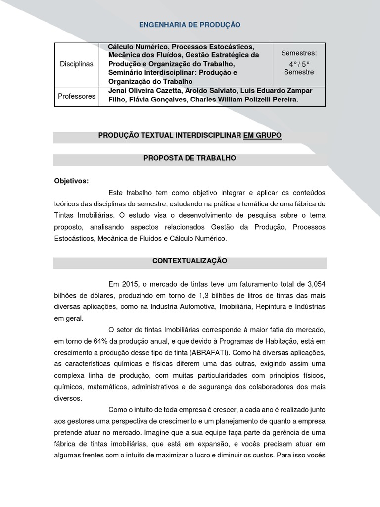 Elabore o Plano Estratgico de Produo da fbrica de tintas imobilirias para