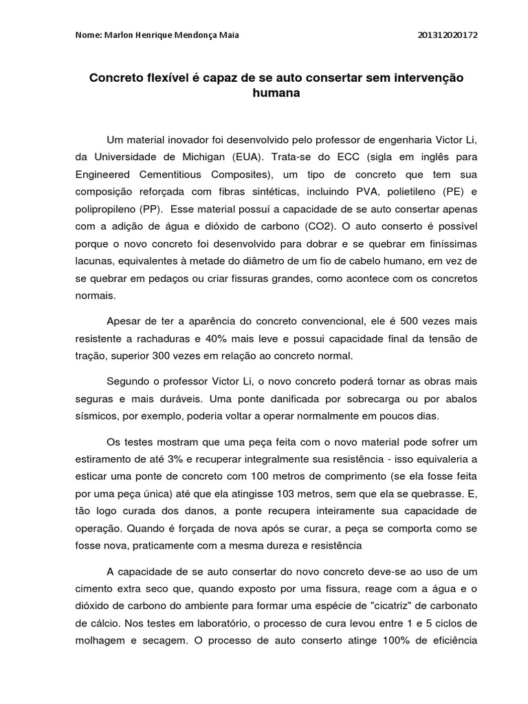 flexvel do que o concreto tradicional e se comporta mais como um metal do que