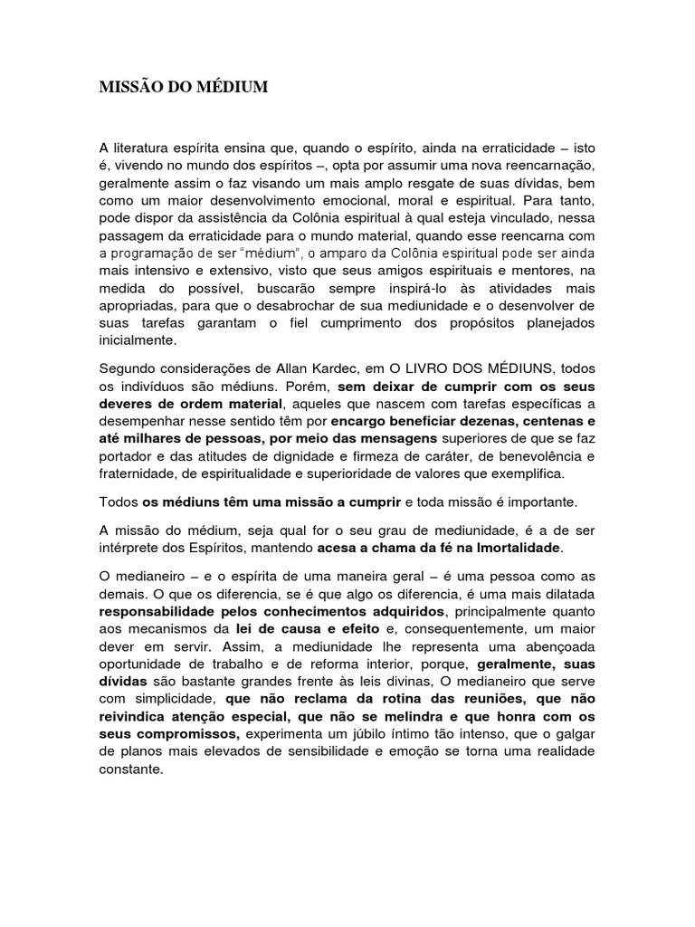 Todos os mdiuns tm uma misso a cumprir e toda misso importante.