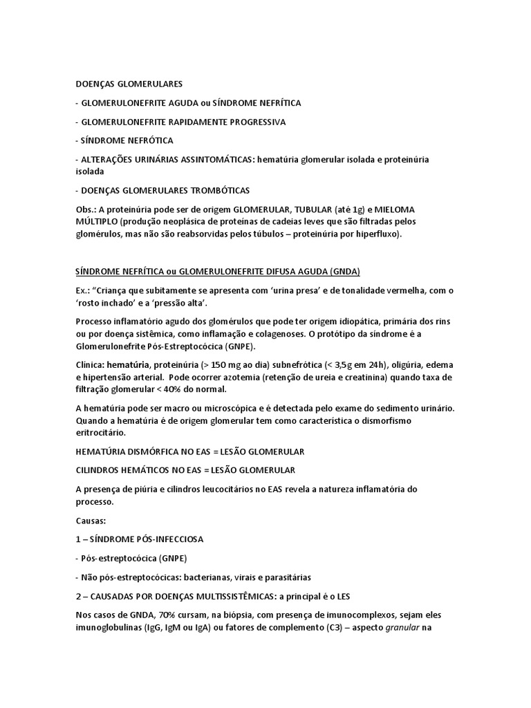 - GLOMERULONEFRITE AGUDA ou SNDROME NEFRTICA