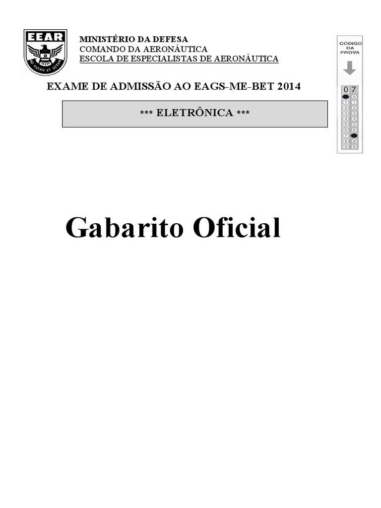 Gabarito Oficial do Exame EAGS-ME-BET 2014