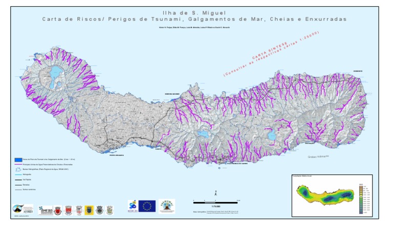 Zonas de Risco de Tsumani e/ou Galgamento de Mar (Cota: ~ 20 m)