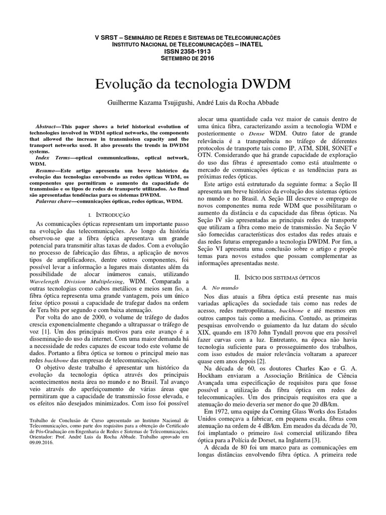 Para continuar os estudos nessa rea fica como sugesto o [23] O. Adam, The Benefits of WDM & ATM, dez 1998. [Online]. Available: