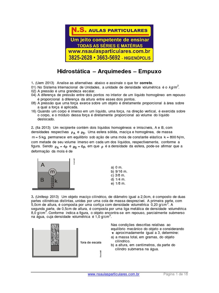 2. (Ita 2013) Um recipiente contm dois lquidos homogneos e imiscveis, A e B, com