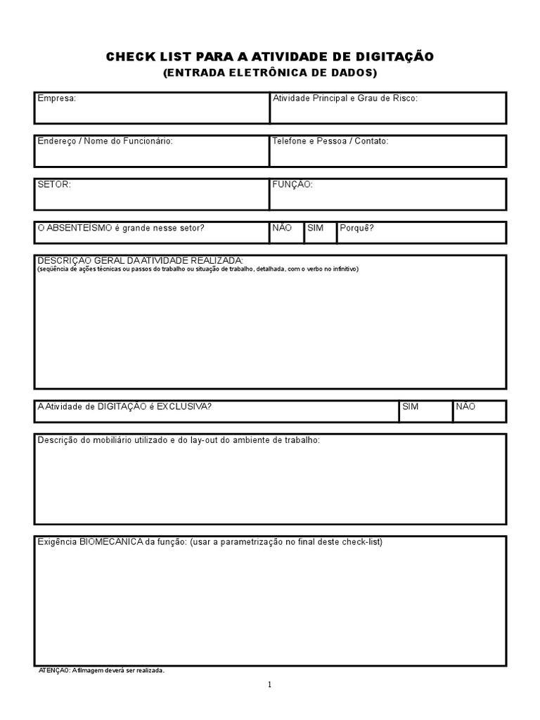 Exigncia BIOMECNICA da funo: (usar a parametrizao no final deste check-list)