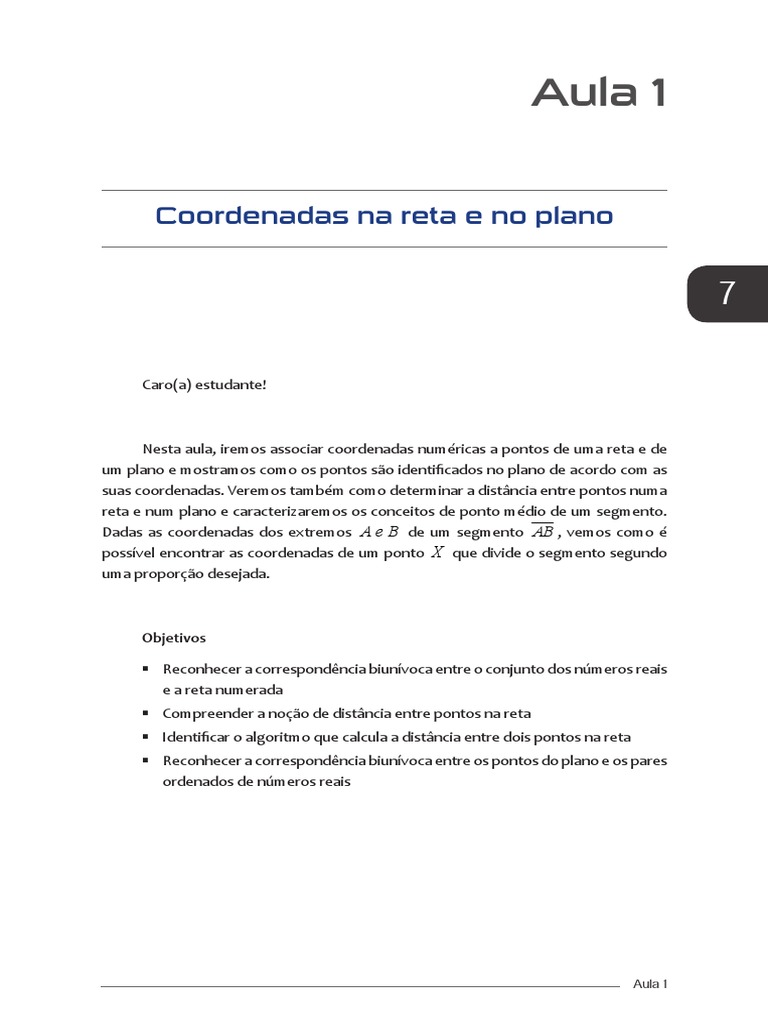 Nesta aula, iremos associar coordenadas numricas a pontos de uma reta e de