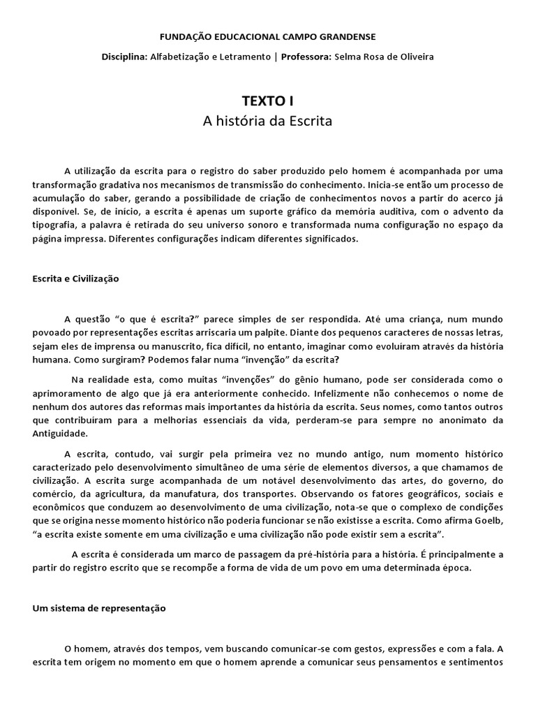 Disciplina: Alfabetizao e Letramento | Professora: Selma Rosa de Oliveira