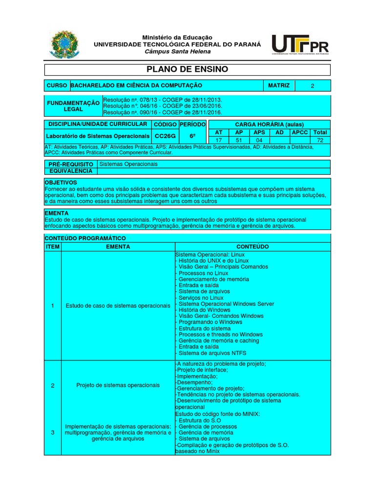 laboratrios, aulas prticas, seminrios sobre Sistemas Operacionais.