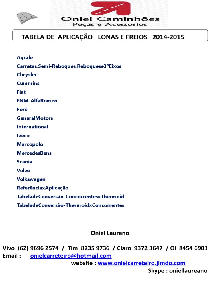CATLOGO DE APLICAO LONAS PARA FREIOS