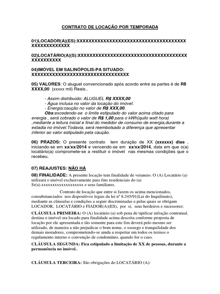 CONTRATO DE LOCAO POR TEMPORADA