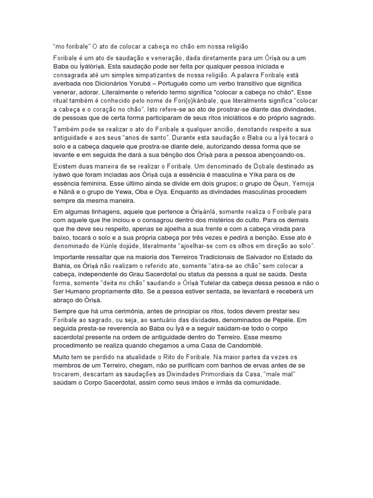 consagrada at um simples simpatizantes de nossa religio. A palavra Foribal est