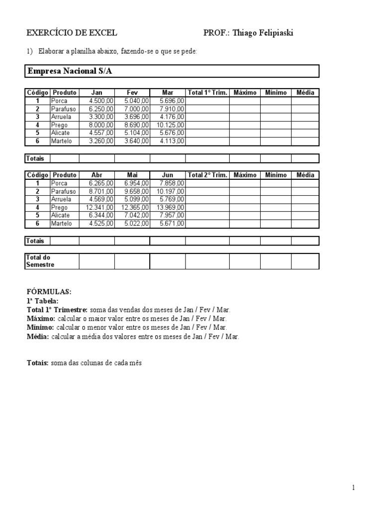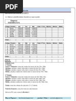 1) Elaborar a planilha abaixo, fazendo-se o que se pede: