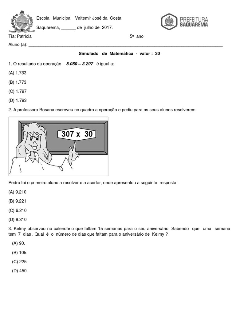3. Kelmy observou no calendrio que faltam 15 semanas para o seu aniversrio. Sabendo que uma semana