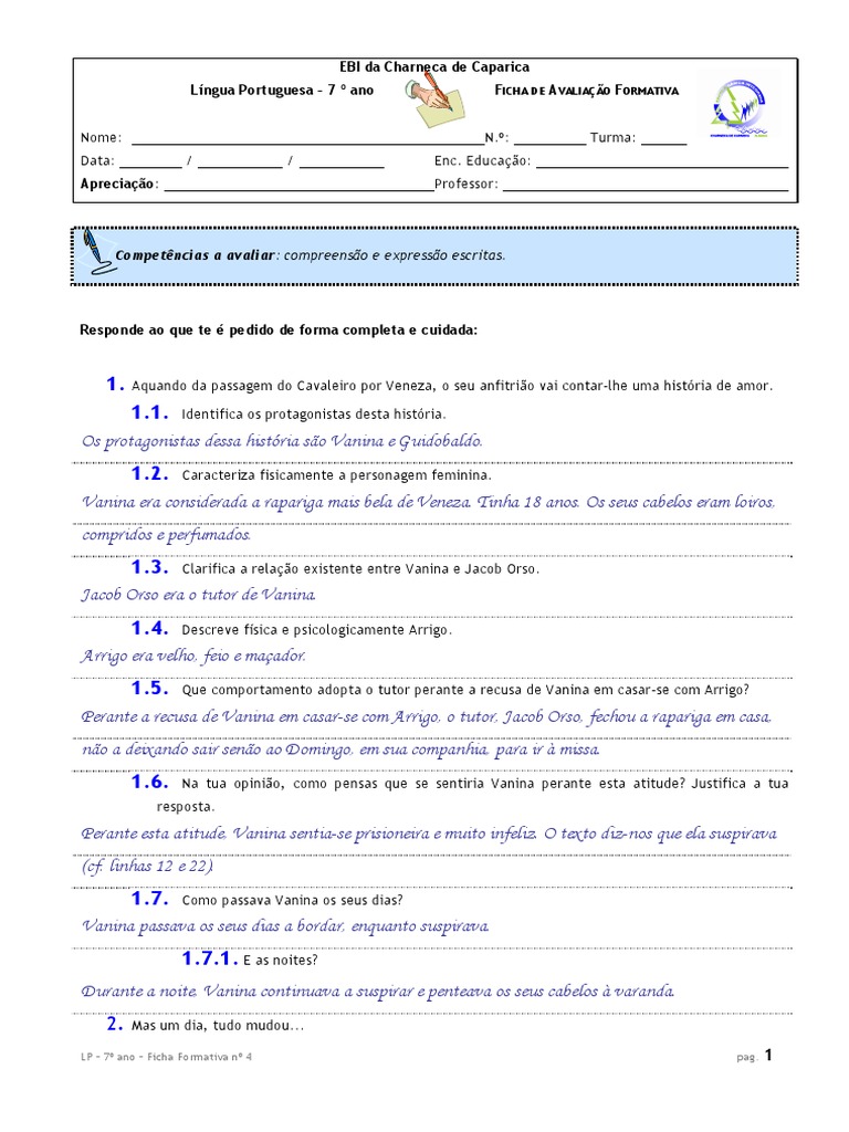 LP 7 ano Ficha Formativa n 4 pag. 1