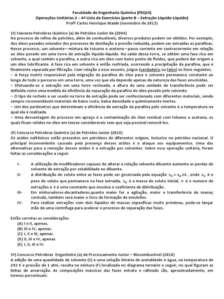 Operaes Unitrias 2 4 Lista de Exerccios (parte B Extrao Lquido-Lquido)