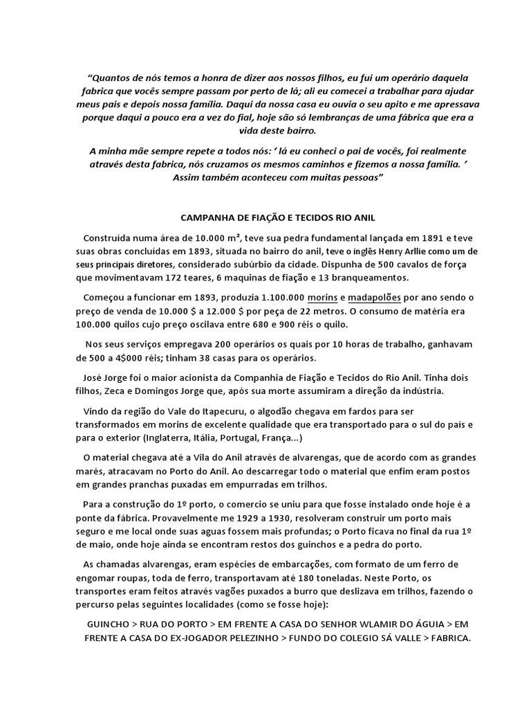 CAMPANHA DE FIAÇÃO E TECIDOS RIO ANIL