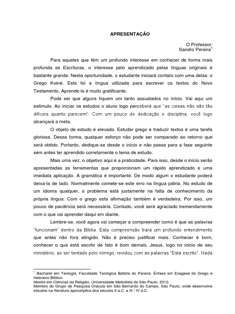 UNIDADE 1 INTRODUO AO ESTUDO DO GREGO DO NOVO TESTAMENTO