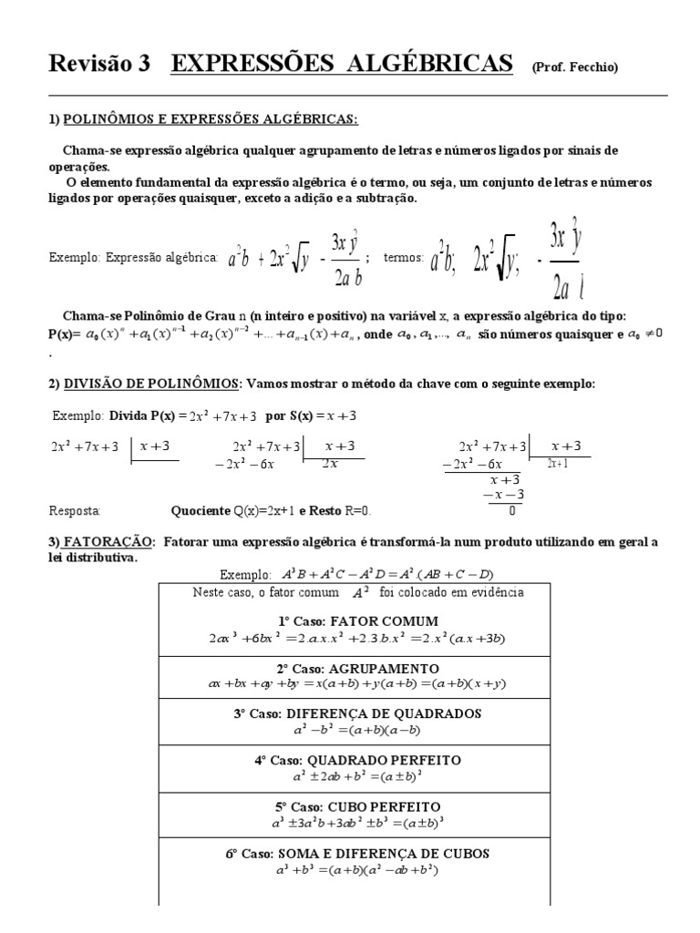 Revisão 3 EXPRESSÕES ALGÉBRICAS (Prof.