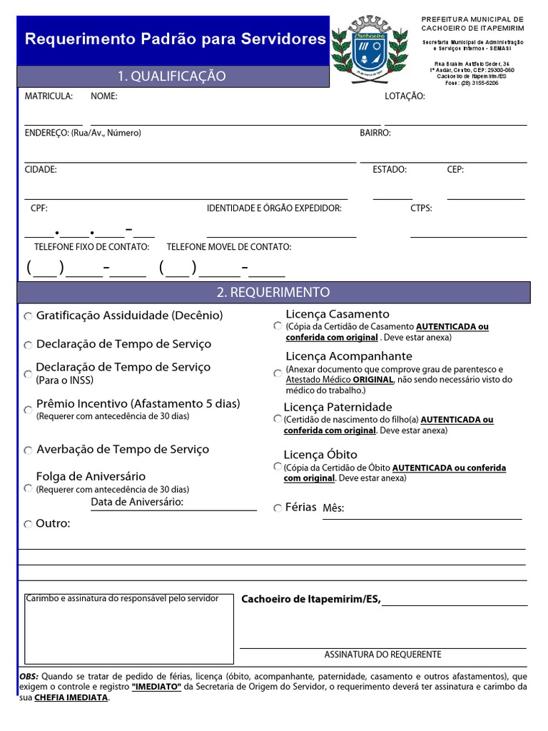 Requerimento Padro para Servidores Secretaria Municipal de Administrao