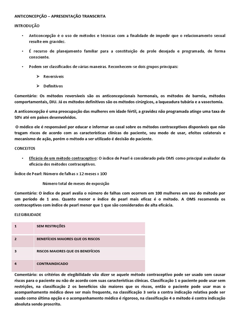 contraceptivos com ndice de pearl menor que 1 que so considerados de alta eficcia.