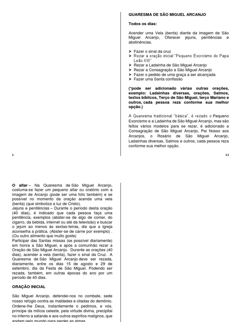 Exorcismo e a Ladainha de São Miguel Arcanjo, mas são