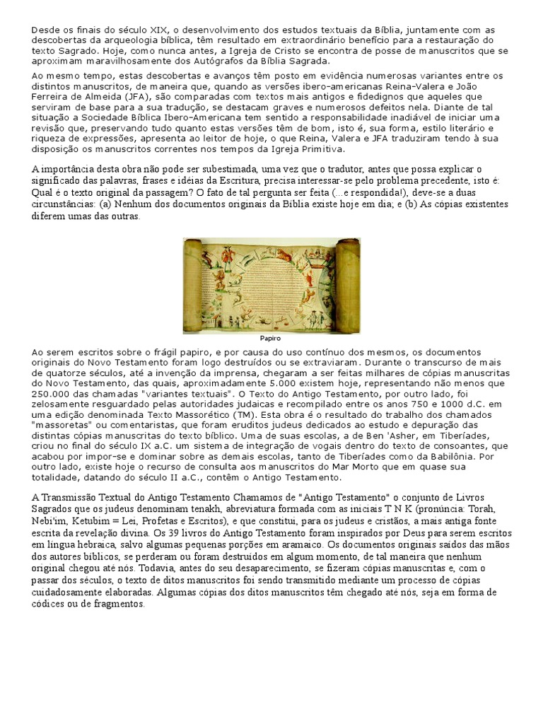 circunstâncias: (a) Nenhum dos documentos originais da Bíblia existe hoje em dia; e (b) As cópias existentes