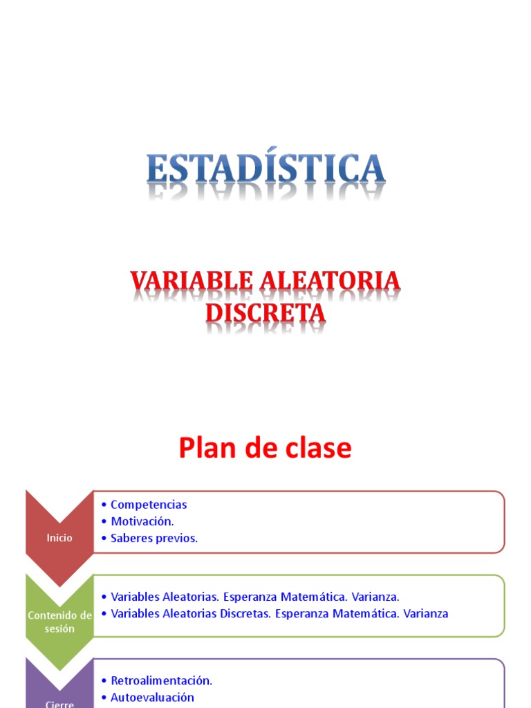 Contenido de • Variables Aleatorias Discretas. Esperanza Matemática. Varianza