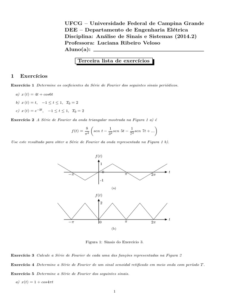 Exercı́cio 1 Determine os coeficientes da Série de Fourier dos seguintes sinais periódicos.