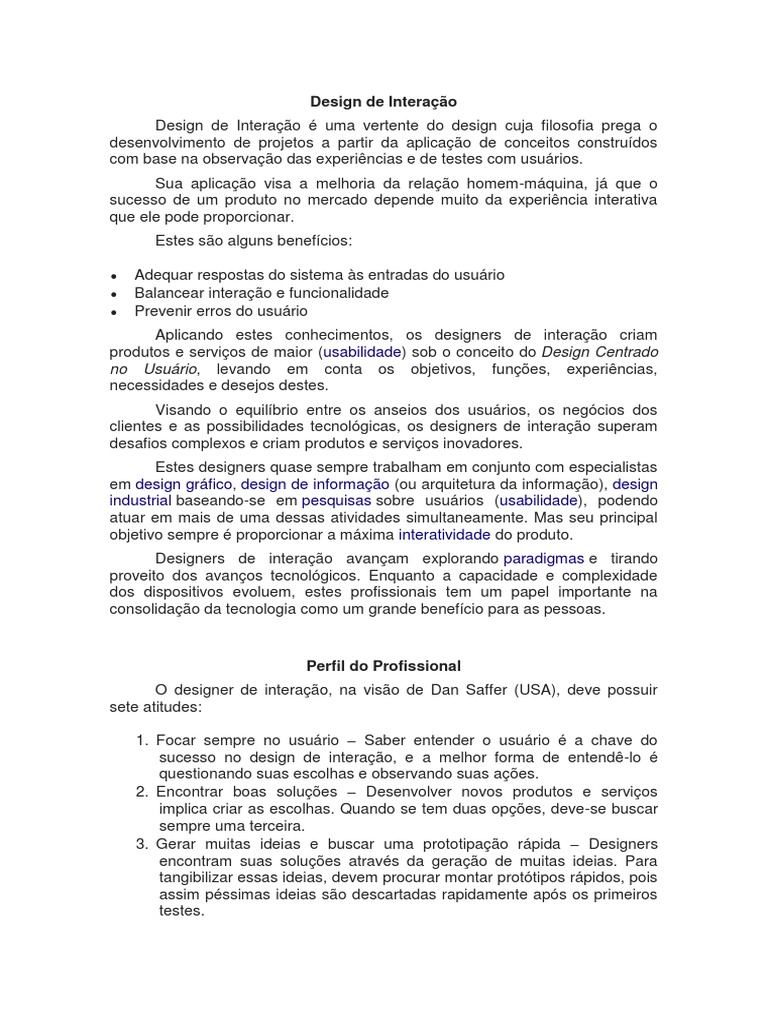 O designer de interação, na visão de Dan Saffer (USA), deve possuir